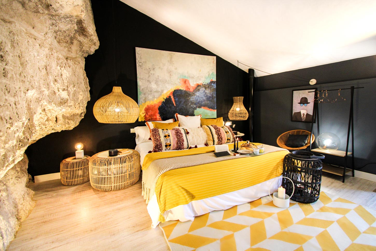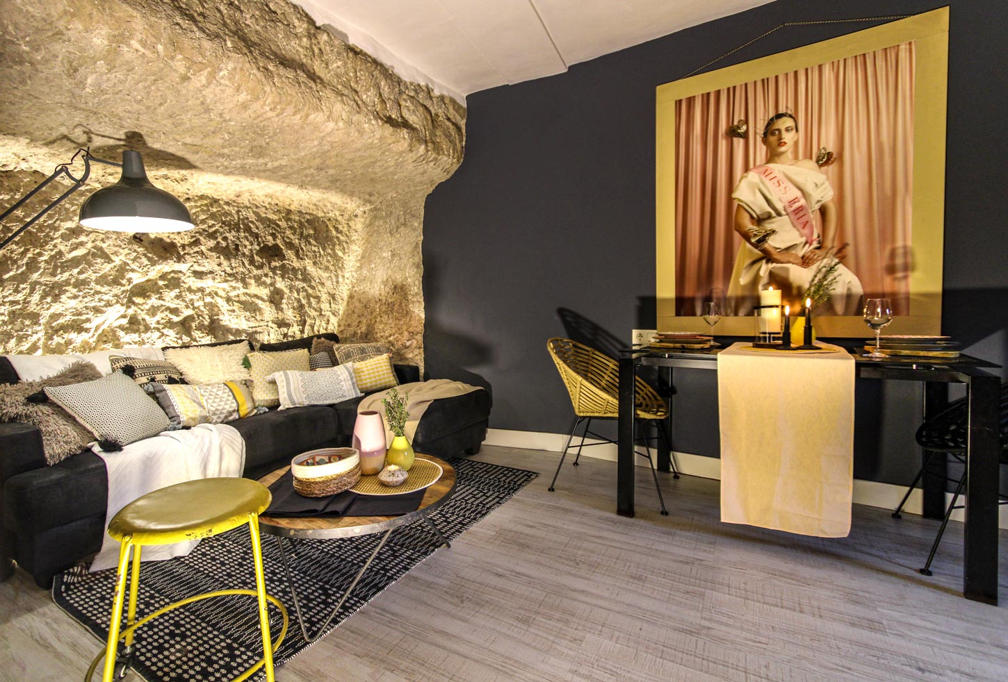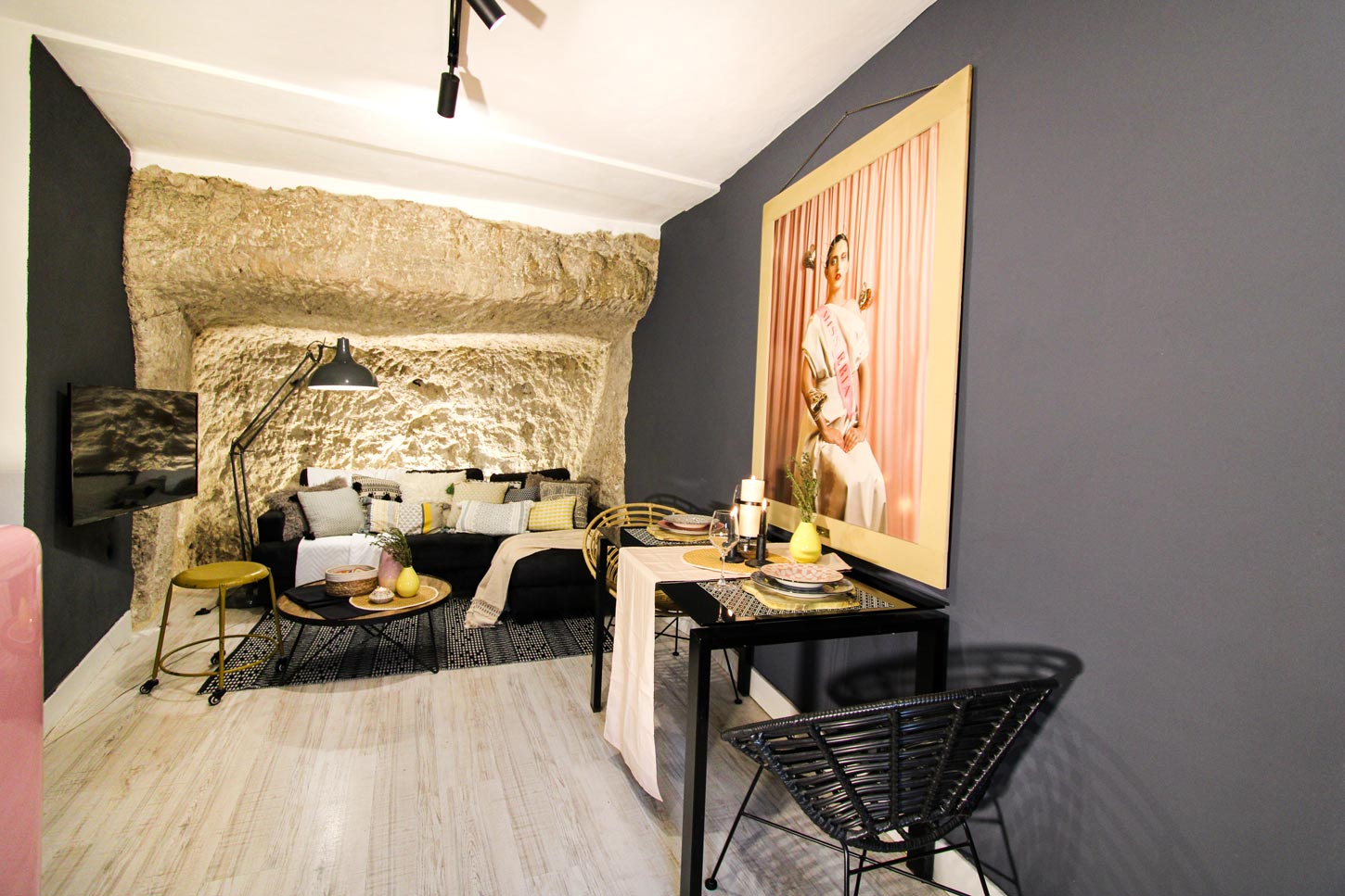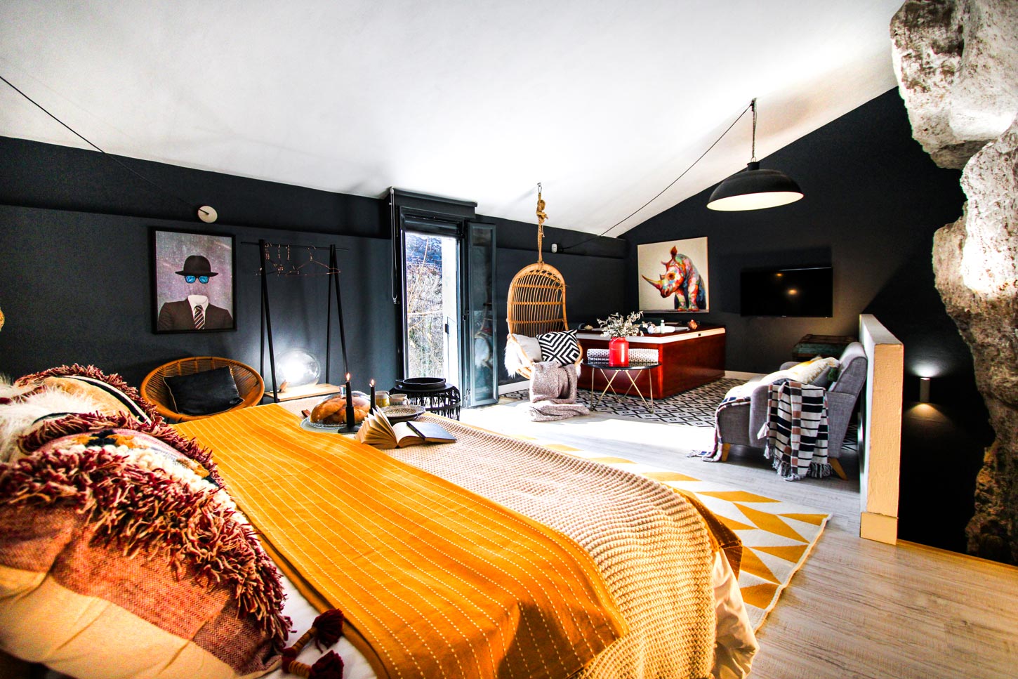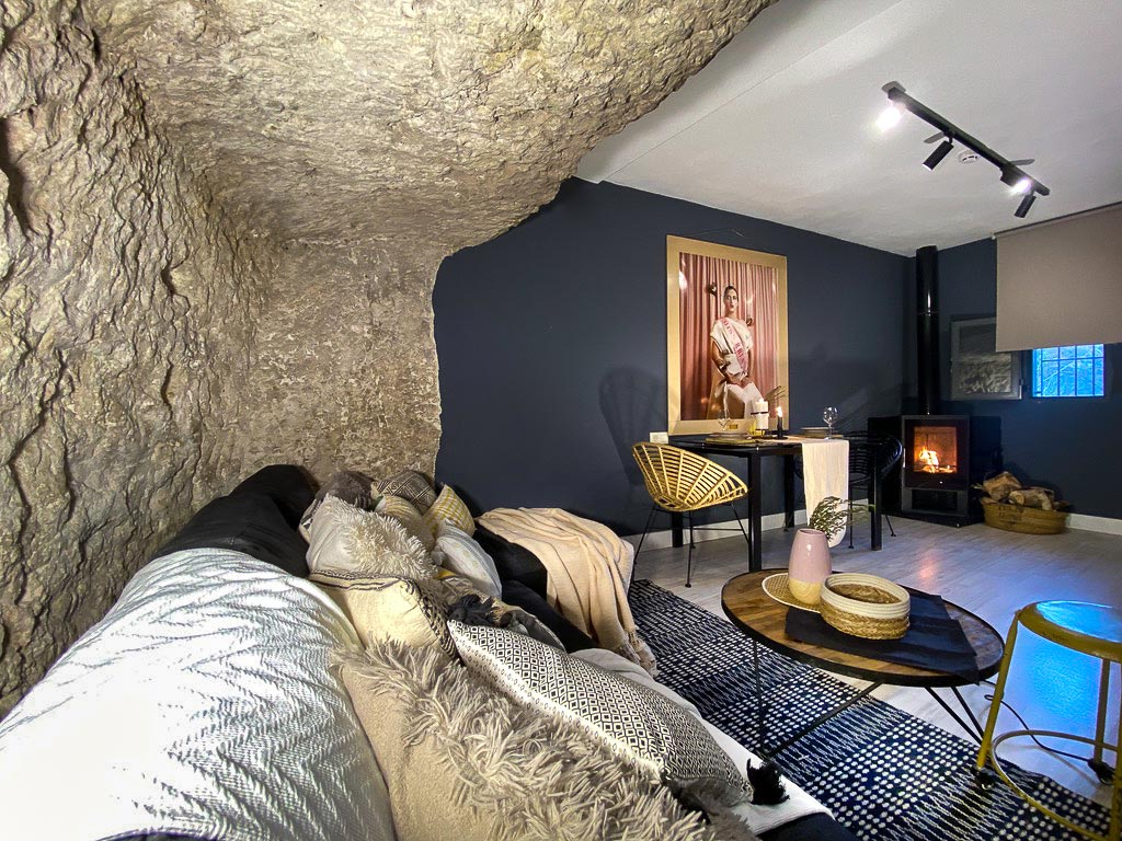 COVA is one of our new PREMIUM SUITES. It has been fully restored in 2018, preserving the essence that characterized it and adapting it to new needs. It consists of 80 m2, divided into two floors. In the first one there is a living room with a fireplace, where it merges with a fully equipped open kitchen.