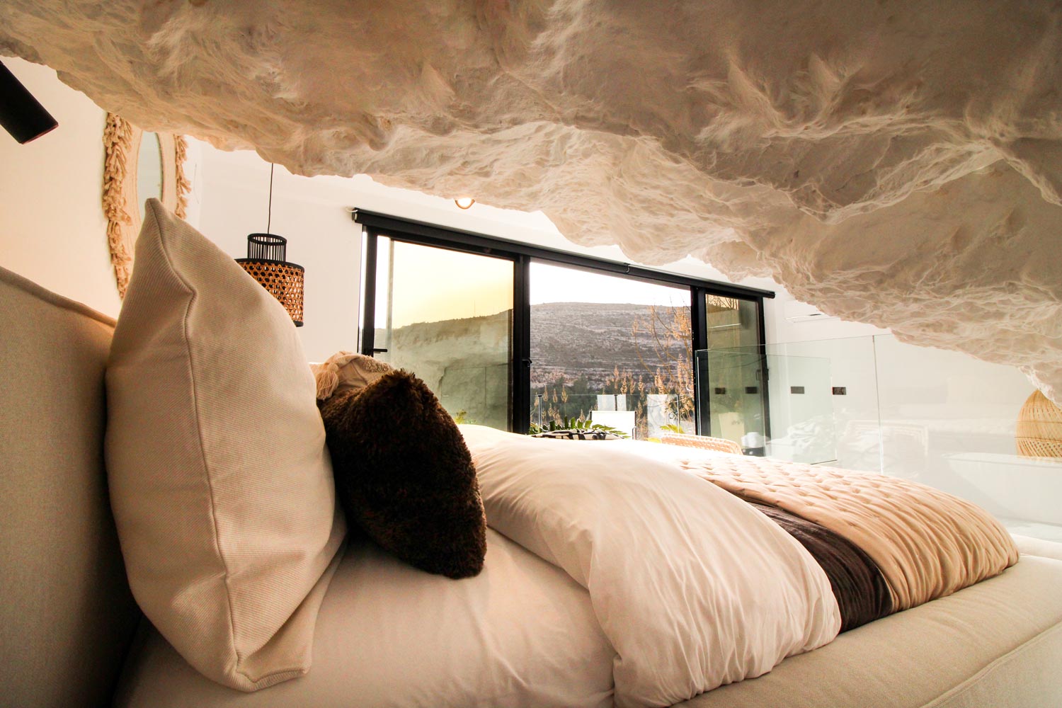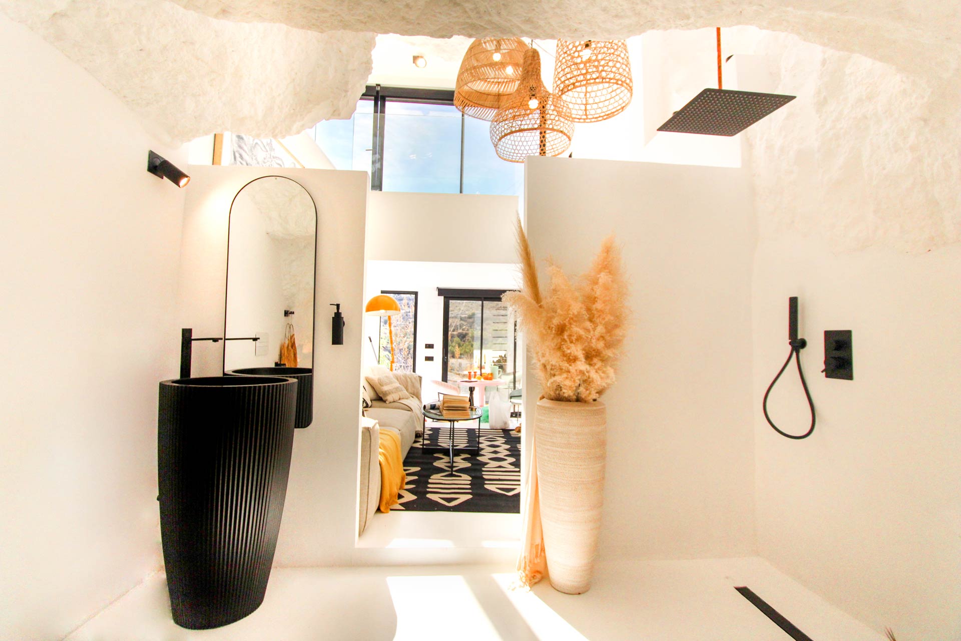 En la suite se encuentra un espectacular jacuzzi privado climatizado, enclavado en el macizo rocoso que abraza toda la villa.