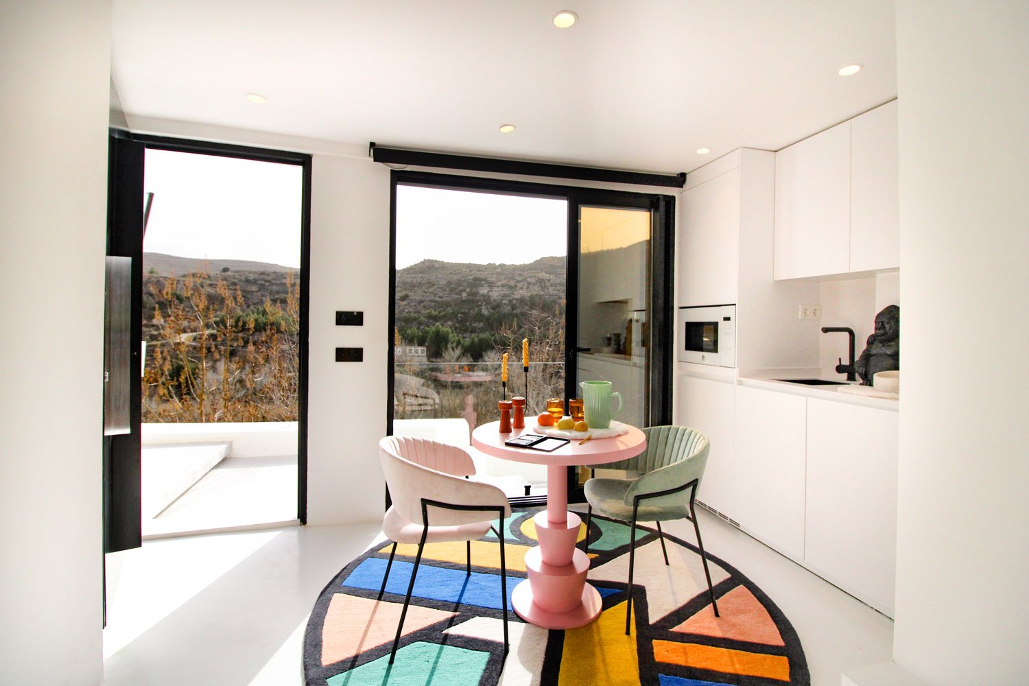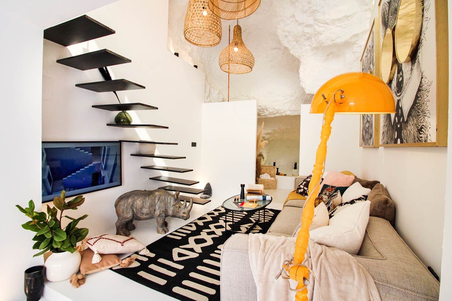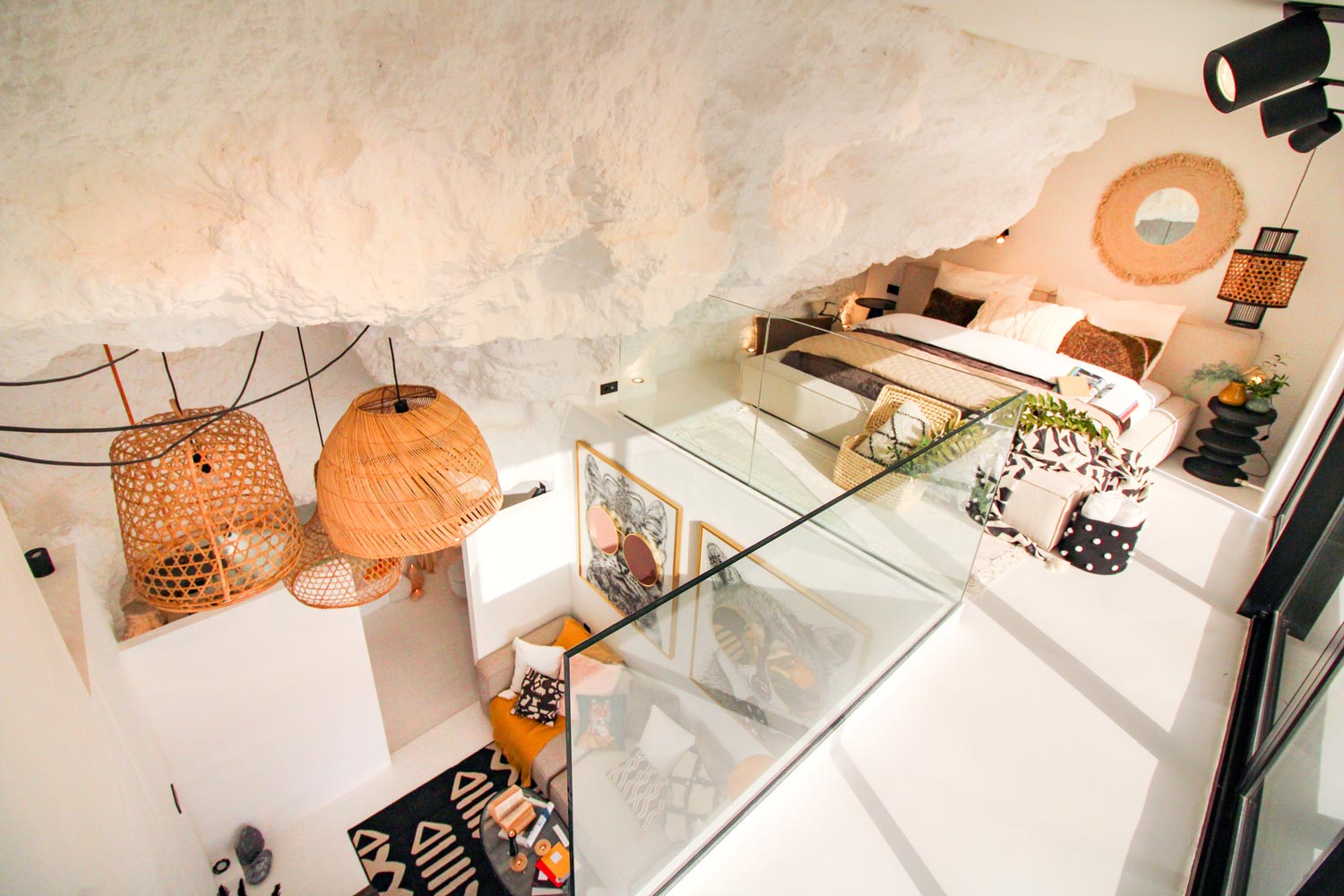 Nuestra Cave Suite KAHF es una cueva con siglos de antigüedad, que fue rehabilitada íntegramente en 2023, conservando la esencia que le caracterizaba y adaptándola a las nuevas necesidades. Consta de 60 m2, divididos en dos plantas, una primera planta, con un amplio salón vanguardista donde fusiona con una cocina de diseño abierta y completamente equipada. En la segunda planta nos encontramos con un espacio diáfano y desenfadado con una cama KING SIZE, donde no habrá una mejor experiencia que un despertar con unas vistas desde la cama o desde su terraza privada a la Hoz del río Júcar.