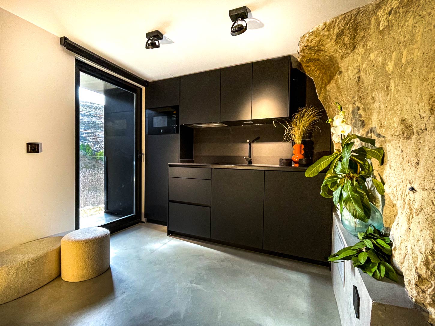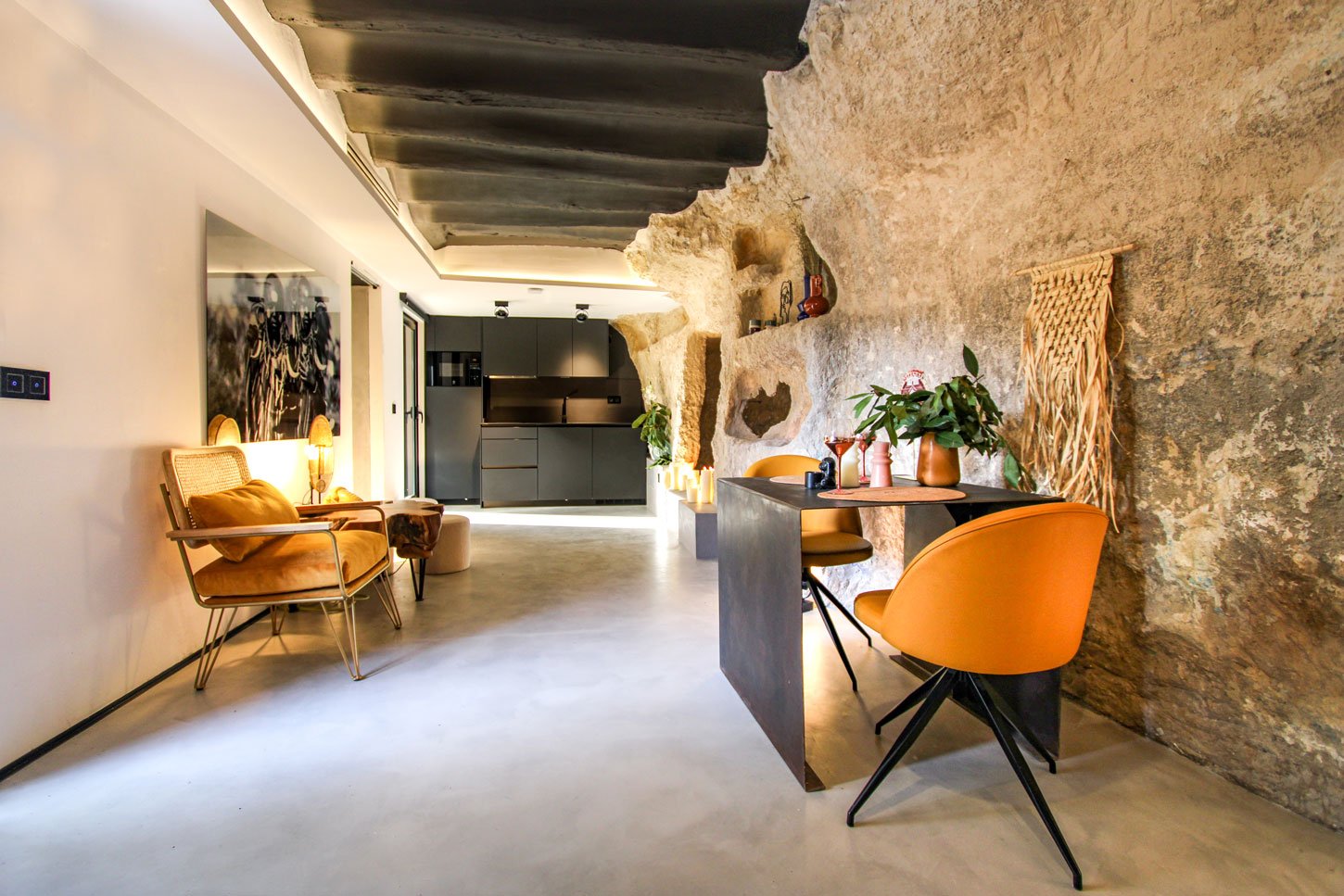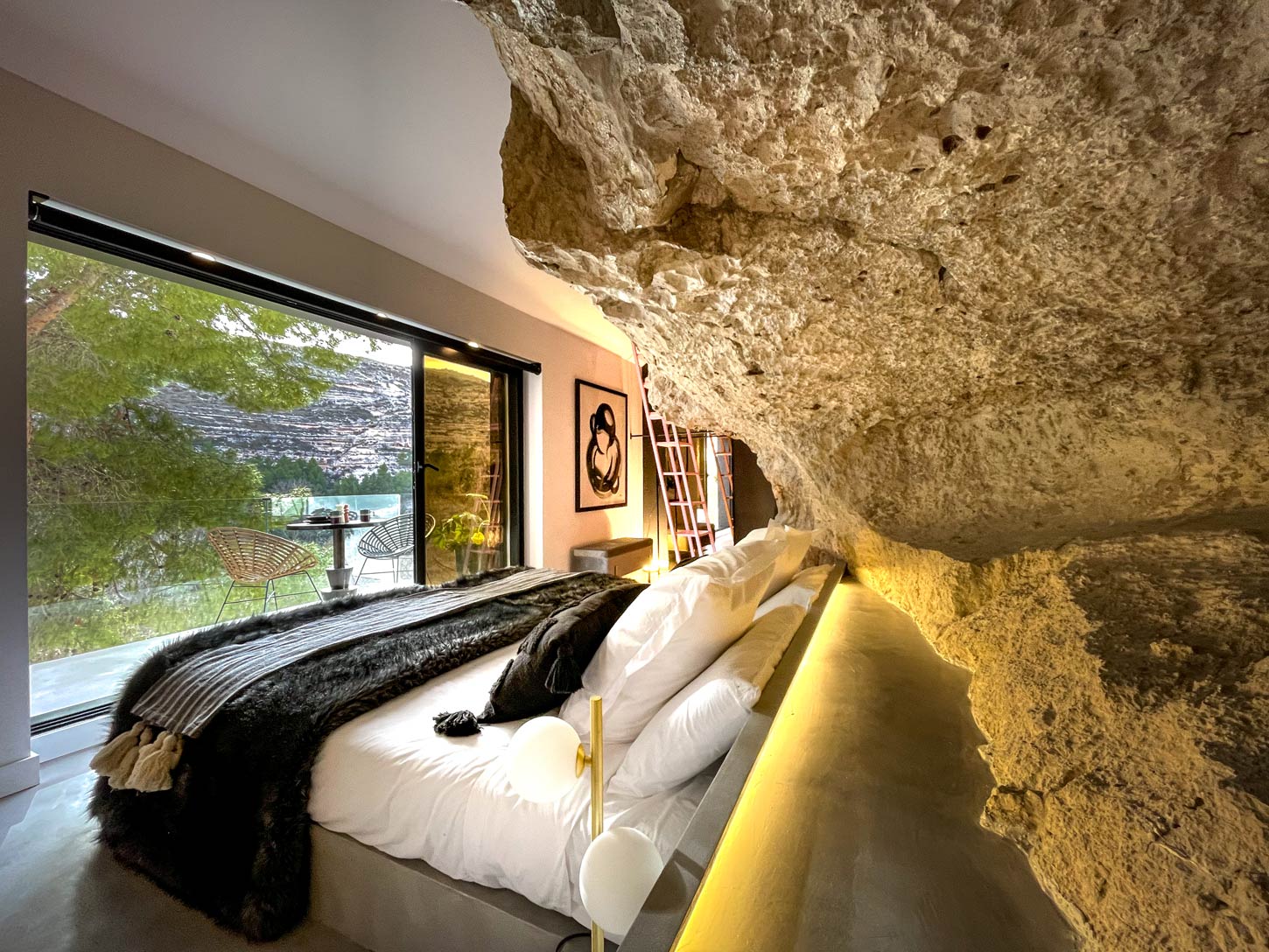 Una cueva con siglos de antigüedad, que fue rehabilitada íntegramente en 2022, conservando la esencia que le caracterizaba y adaptándola a las nuevas necesidades. Consta de 80 m2, divididos en tres plantas, una primera planta, con un amplio salón vanguardista de 50 m2 donde fusiona con una cocina de diseño abierta y completamente equipada y un espectacular jacuzzi privado climatizado, excavado íntegramente en el macizo rocoso que abraza toda la villa. En la segunda planta nos encontramos con un espacio diáfano y desenfadado con techos abuhardillados con una cama KING SIZE, donde no habrá una mejor experiencia que un despertar con unas vistas desde la cama a la Hoz del río Júcar.